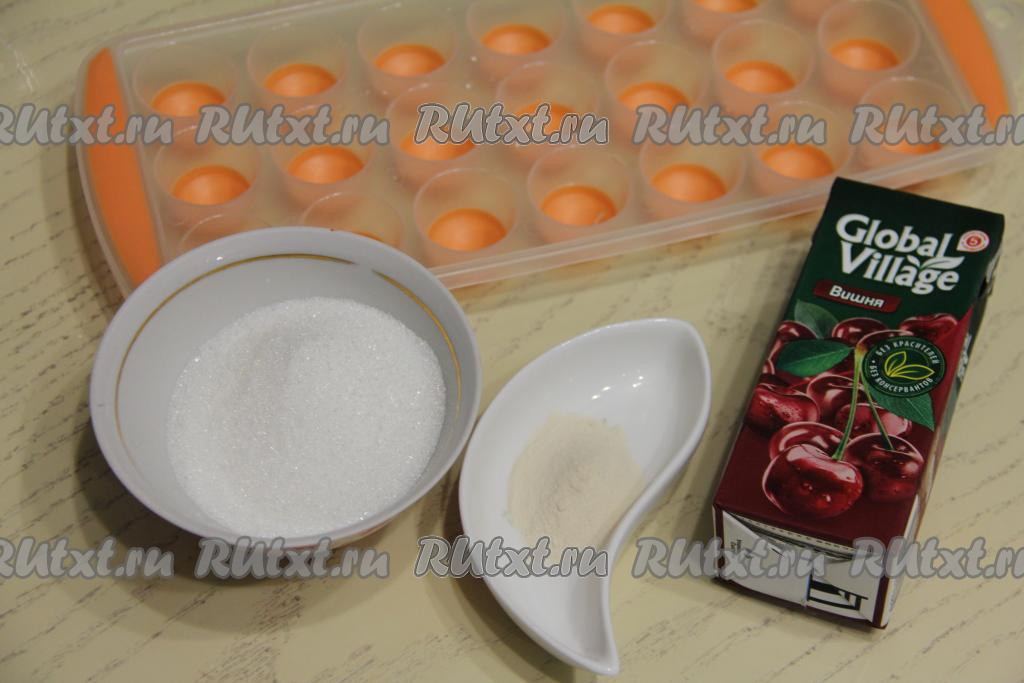 Подготовить продукты. Сок можно взять любой фруктовый или ягодный. Я взяла вишнёвый сок.