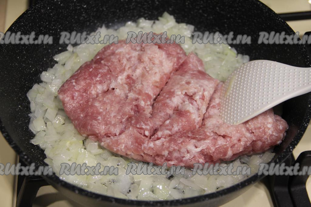 Обжаривать фарш с луком, постоянно разбивая комочки мяса, минут 10-12 (до готовности). В конце жарки посолить фарш по вкусу, приправить любимыми специями (я посыпала чёрным молотым перцем), прогреть минуты 2, убрать с огня, дать остыть и начинка для чебуреков готова.