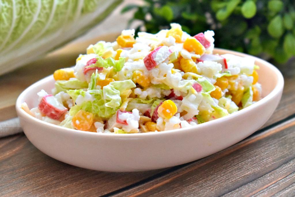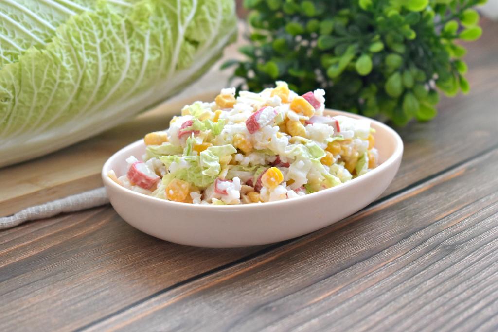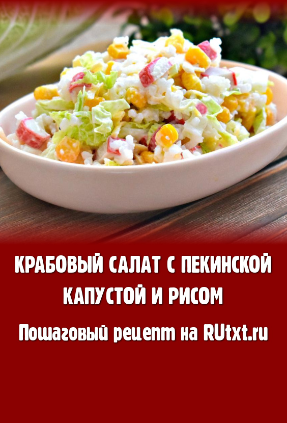 Крабовые палочки отлично сочетаются с различными ингредиентами, поэтому их достаточно часто используют для приготовления салатов и закусок. В этот раз решила поделиться рецептом приготовления крабового салата с пекинской капустой, рисом, кукурузой и сыром. Блюдо получается очень аппетитным, вкусным, достаточно сытным и в меру сочным. Этот салат можно подать и к повседневному обеду, и к праздничному столу.