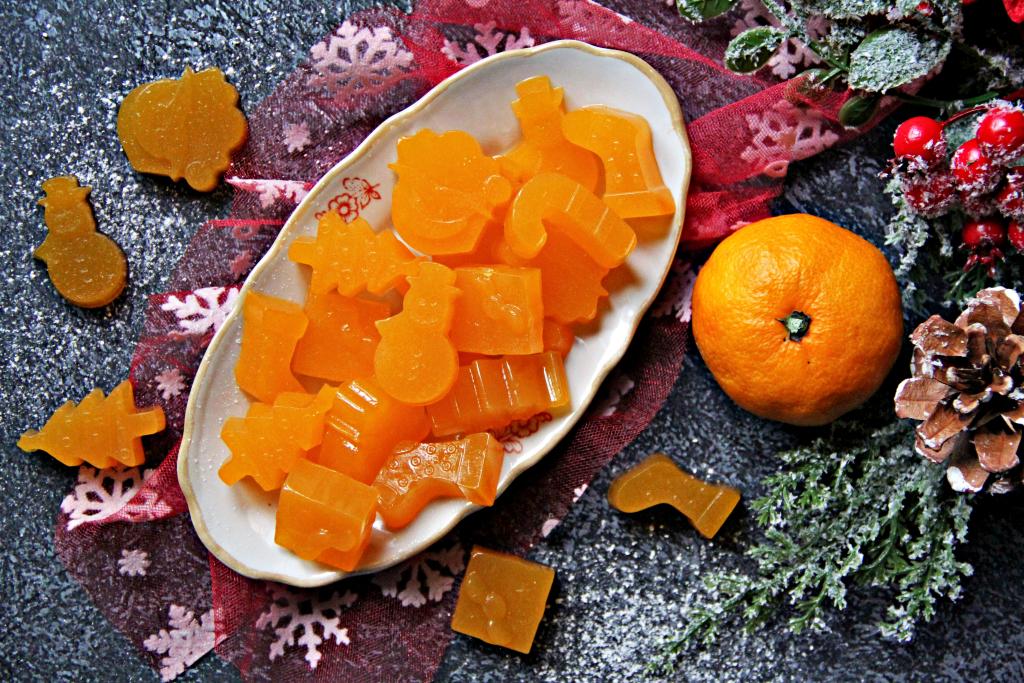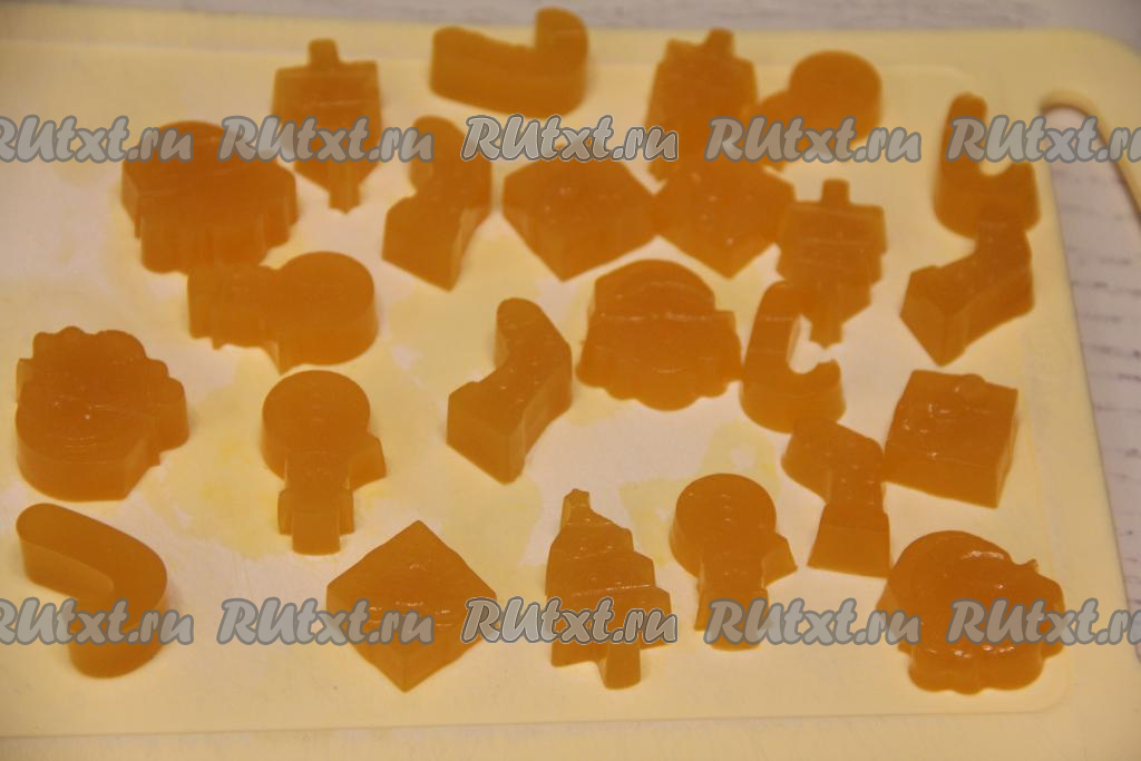 Застывший мармелад, приготовленный из мандаринов с добавлением агар-агара, легко вынимается из формочек. Мармелад получается упругим и не тает при комнатной температуре.