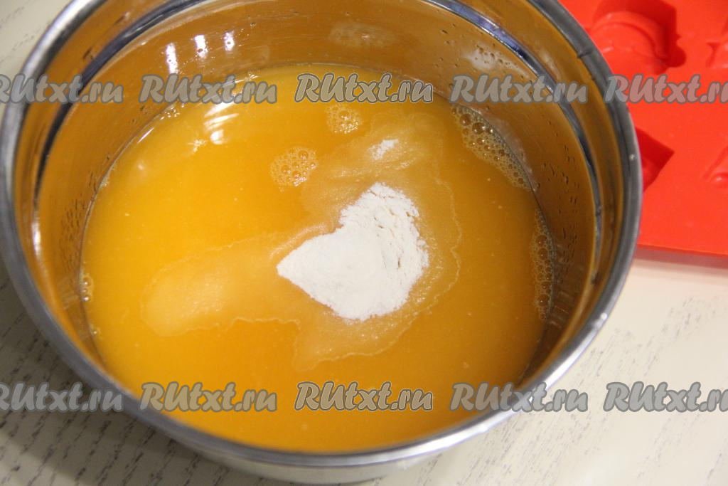 Разлить мандариновую смесь по небольшим силиконовым формочкам (если нет формочек, можно вылить смесь в неглубокую форму, а после застывания нарезать на кубики) и оставить при комнатной температуре на 1 час. Затем поставить форму в холодильник на 2-3 часа (до полного застывания).