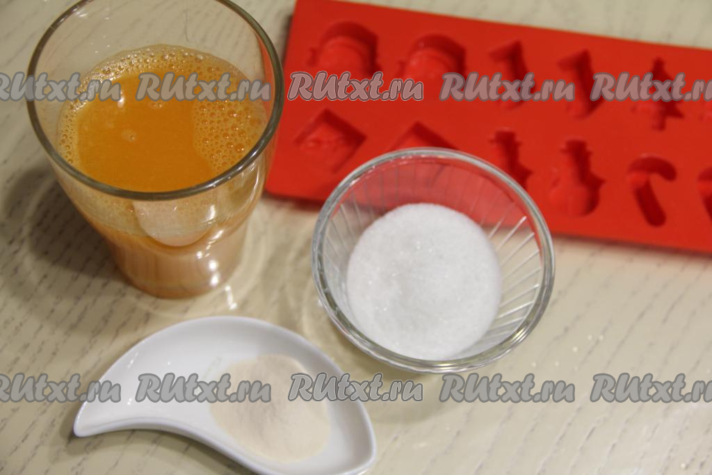 Для приготовления мармелада нам потребуется 250 миллилитров свежевыжатого мандаринового сока.