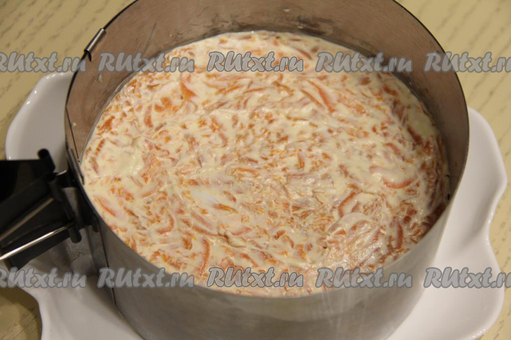 Смазать морковный слой майонезом.