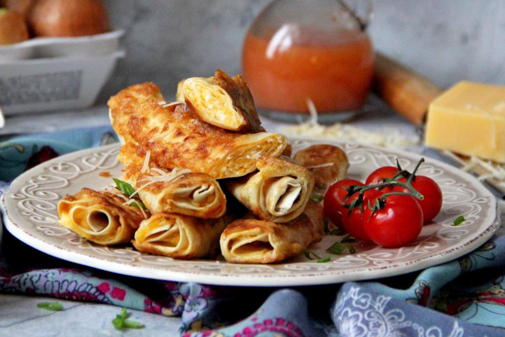 Из лаваша можно приготовить немало простых и вкусных блюд. В этот раз предлагаю сформировать из лаваша аппетитные трубочки с нежной начинкой из сыра и варёных яиц, а затем обжарить их на сковороде. Трубочки получаются румяными, очень вкусными и сытными. Готовятся они и просто, и быстро. Такие трубочки из лаваша с яично-сырной начинкой можно подать и к завтраку, и в качестве перекуса в течение дня.