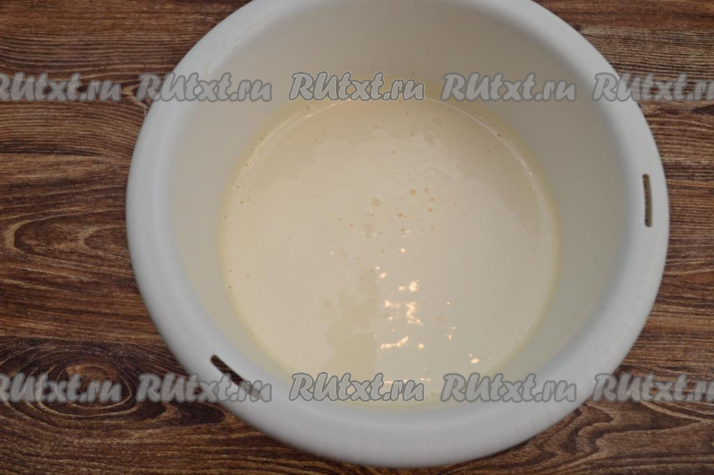 Взбить миксером на максимальной скорости яйца и сахар до побеления и увеличения в объёме (я взбиваю 6-7 минут).