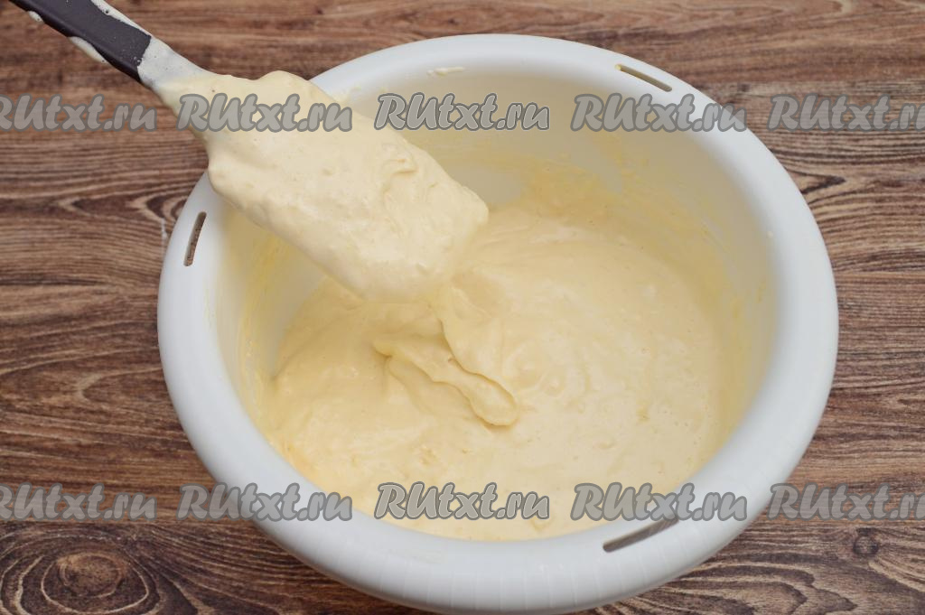 Старайтесь замешивать тесто аккуратно, перемешивая движениями лопатки снизу вверх, сохраняя воздушность взбитых яиц, но при этом полностью вмешивая муку.
