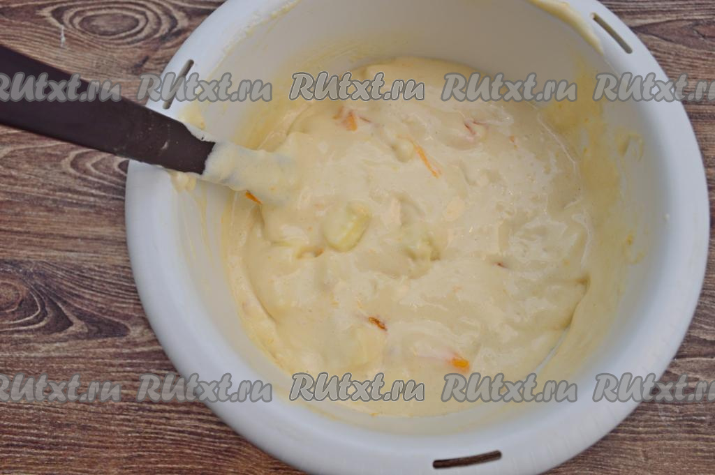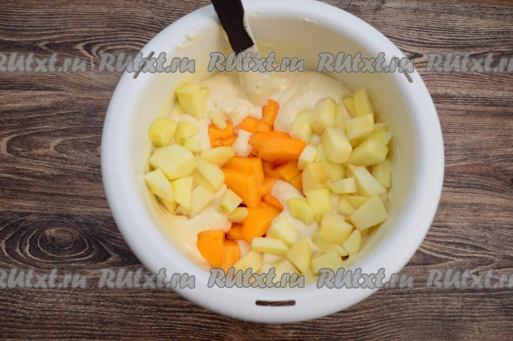 Аккуратно перемешать, равномерно распределяя фрукты по всему тесту.