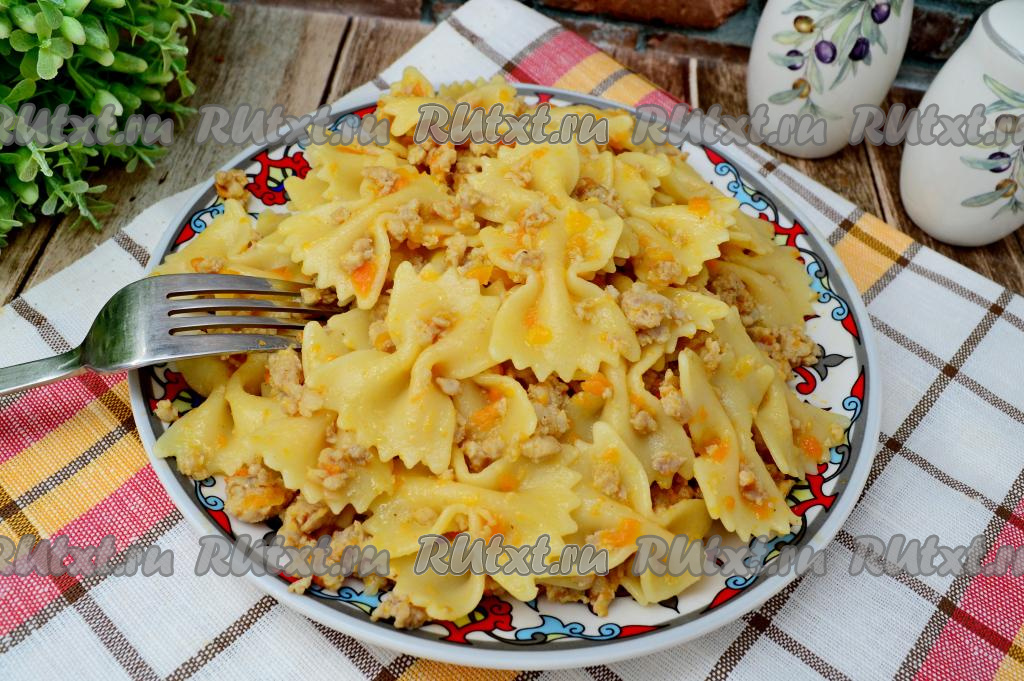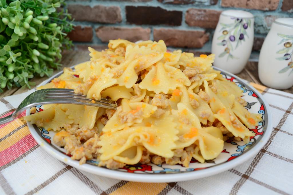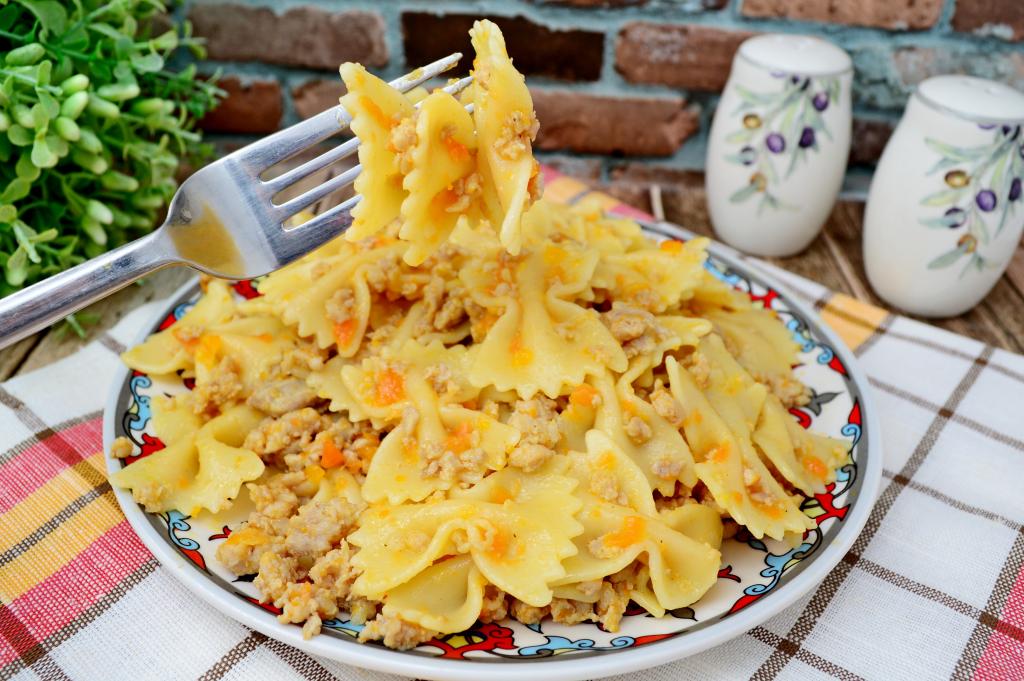 Хочу поделиться многократно проверенным рецептом приготовления макарон по-флотски с куриным фаршем. Блюдо получается сочным, аппетитным и очень вкусным, его можно подать к столу в качестве полноценного обеда или ужина. Макароны подойдут любой формы. Я взяла "бабочки", можно использовать перья, ракушки и так далее. Для получения фарша отлично подойдёт мясо, взятое с любых частей курицы. Но если времени мало, можно использовать покупной фарш. Всем советую приготовить макароны по-флотски по этому простому рецепту и в очередной раз убедиться в том, насколько вкусными, аппетитными и сытными могут быть блюда из вполне доступных продуктов!