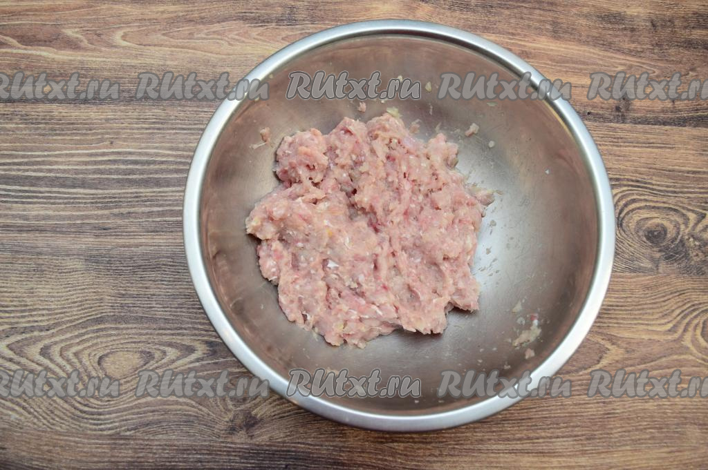 Именно благодаря достаточно большому количеству лука, куриный фарш не будет суховат в готовом блюде.