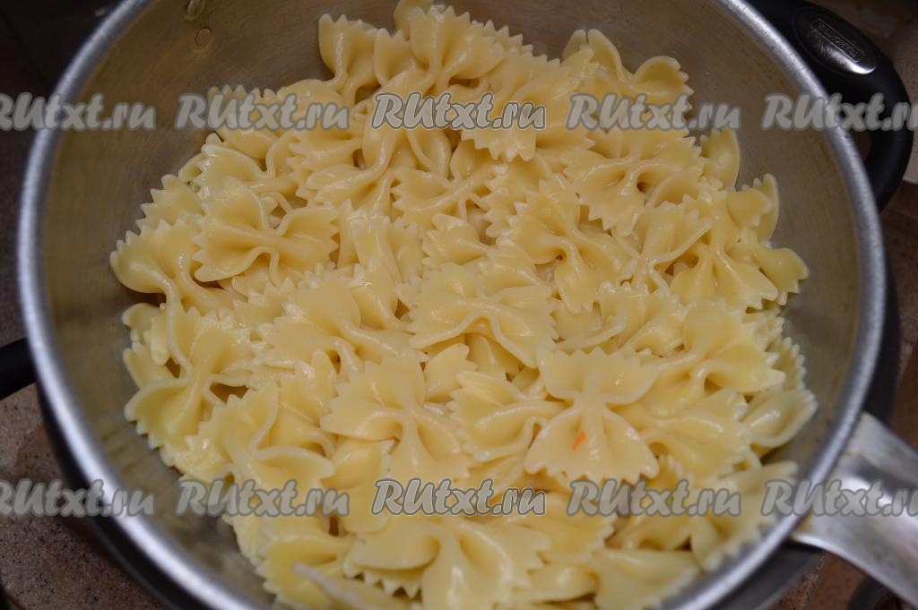 Подготовить продукты. Макароны можно взять любой формы, у меня - "бабочки".