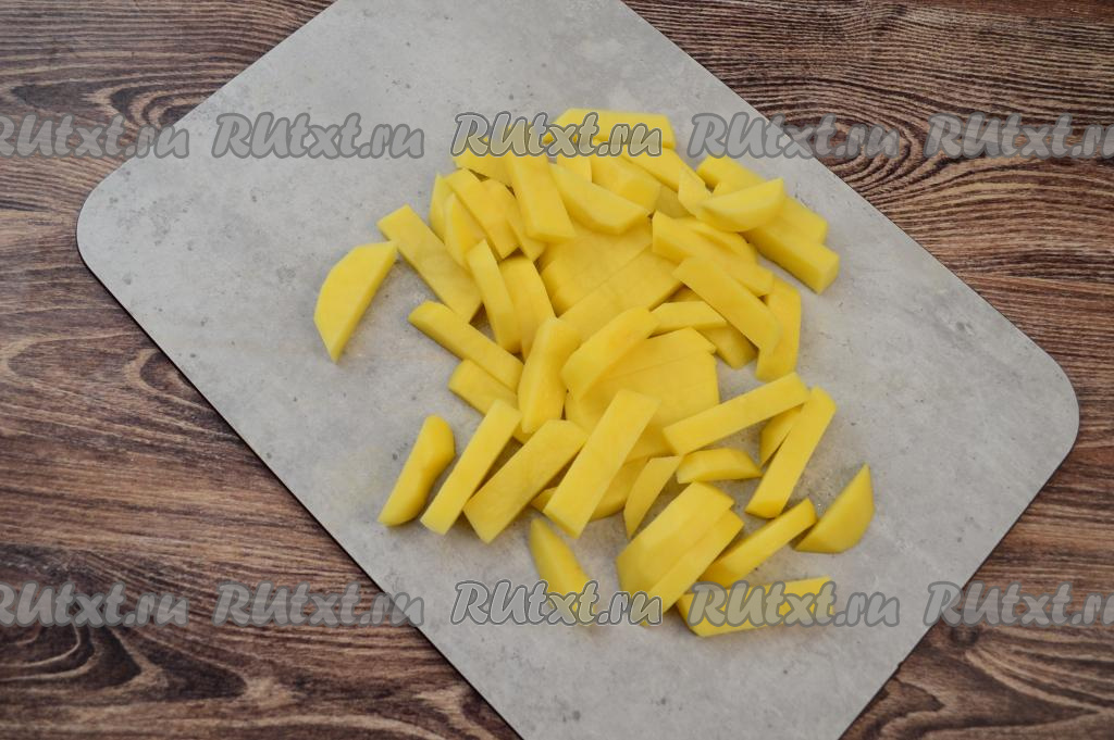 Картофель очистить, а затем нарезать на средние брусочки.