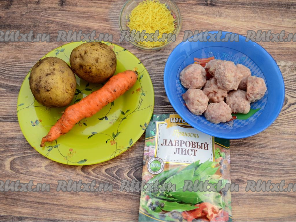 Подготовить продукты. Перед приготовлением супа размораживать фрикадельки не нужно.