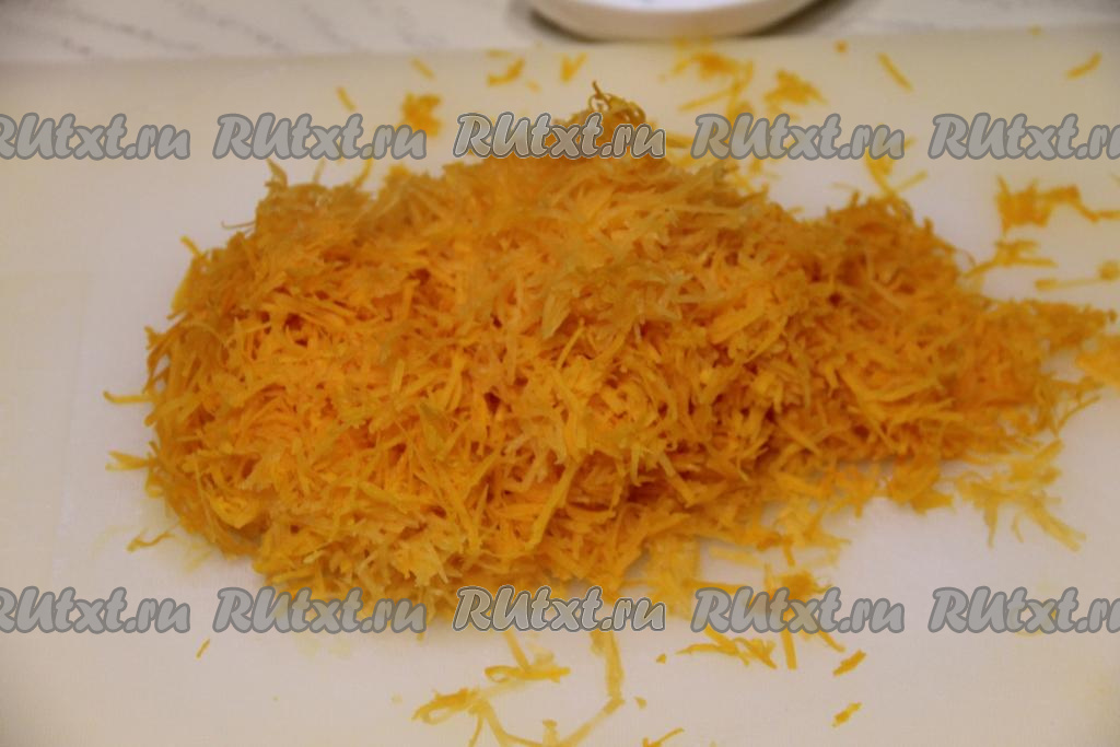200 грамм тыквы, очищенной от кожуры, волокон и семечек, натереть на мелкой тёрке.