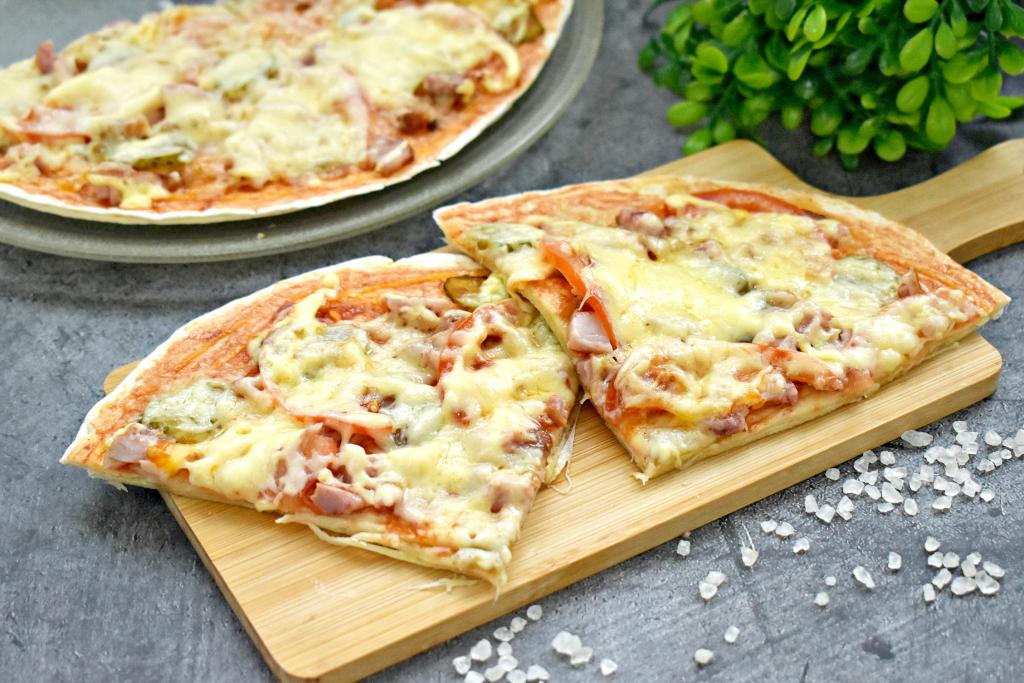 Если вы хотите насладиться вкусом домашней пиццы, но нет времени на замешивание теста и выпечку в духовке, тогда вас точно выручит этот рецепт. Предлагаю приготовить в микроволновке пиццу с сочной начинкой, а в качестве её основы использовать покупную лепёшку "Тортилья". Такие лепёшки можно приобрести практически в любом продуктовом магазине. С начинками, безусловно, можно экспериментировать. Приготовьте в микроволновке за считанные минуты пиццу на тортилье и насладитесь вкусом этой выпечки!