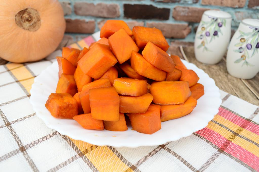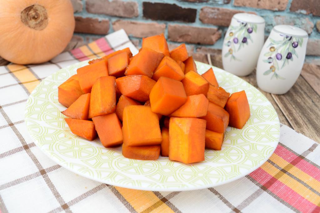 Для того чтобы проверить готовность, проколите кусочек тыквы ножом или вилкой. Если вилка (или нож) легко входит, значит блюдо готово.