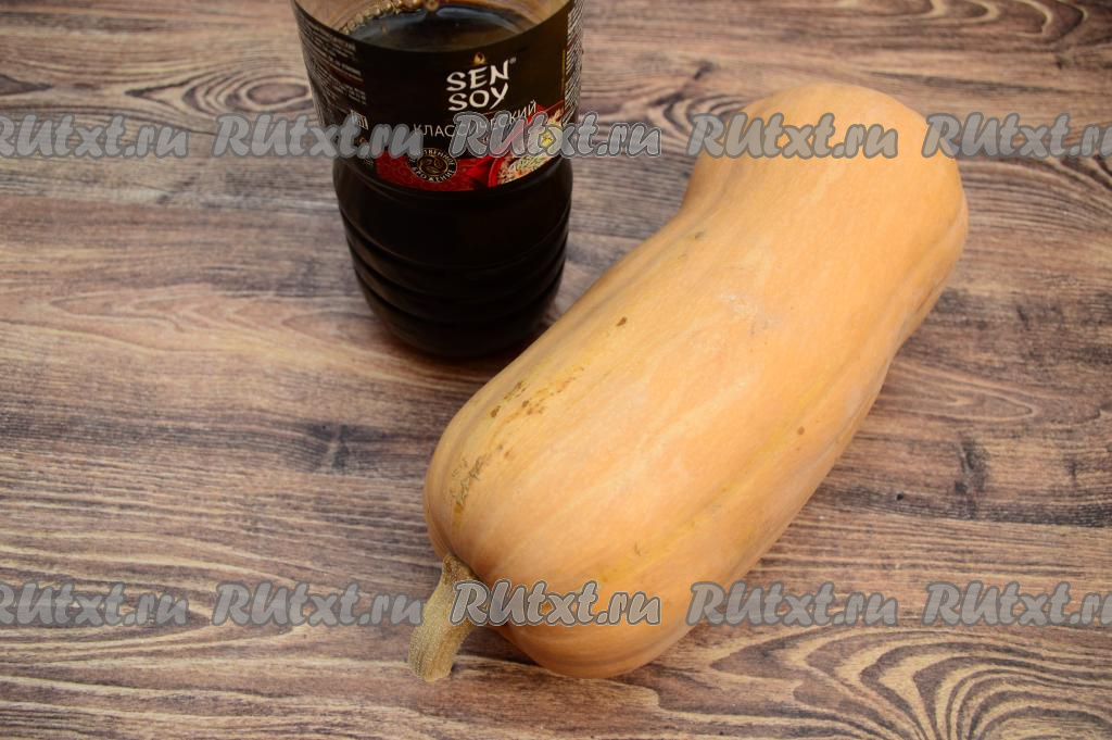 Подготовить продукты. Для этого блюда нам потребуется только соевый соус и тыква.