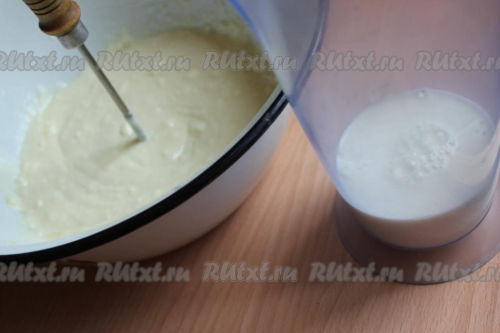 Влейте молоко, снова перемешайте.