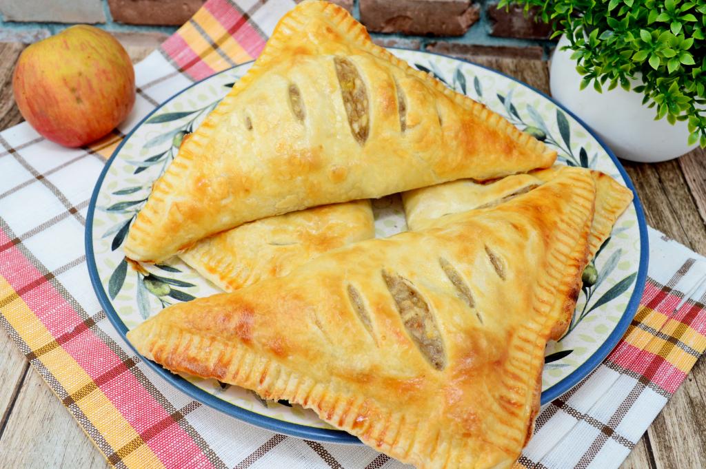 Готовые слойки достать из духовки, дать слегка остыть и можно подавать их к столу.