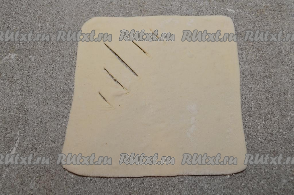 Ближе к одному из углов каждого раскатанного квадрата сделать 5 разрезов ножом.