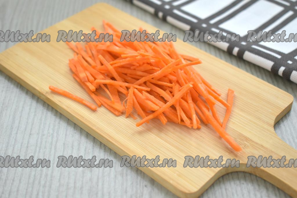 Очищаем болгарский перец от семян, нарезаем на полоски. В закипевший бульон выкладываем нарезанные помидоры, болгарский перец и морковь. Даём супу закипеть, уменьшаем огонь, варим 10-15 минут (морковка должна стать достаточно мягкой).
