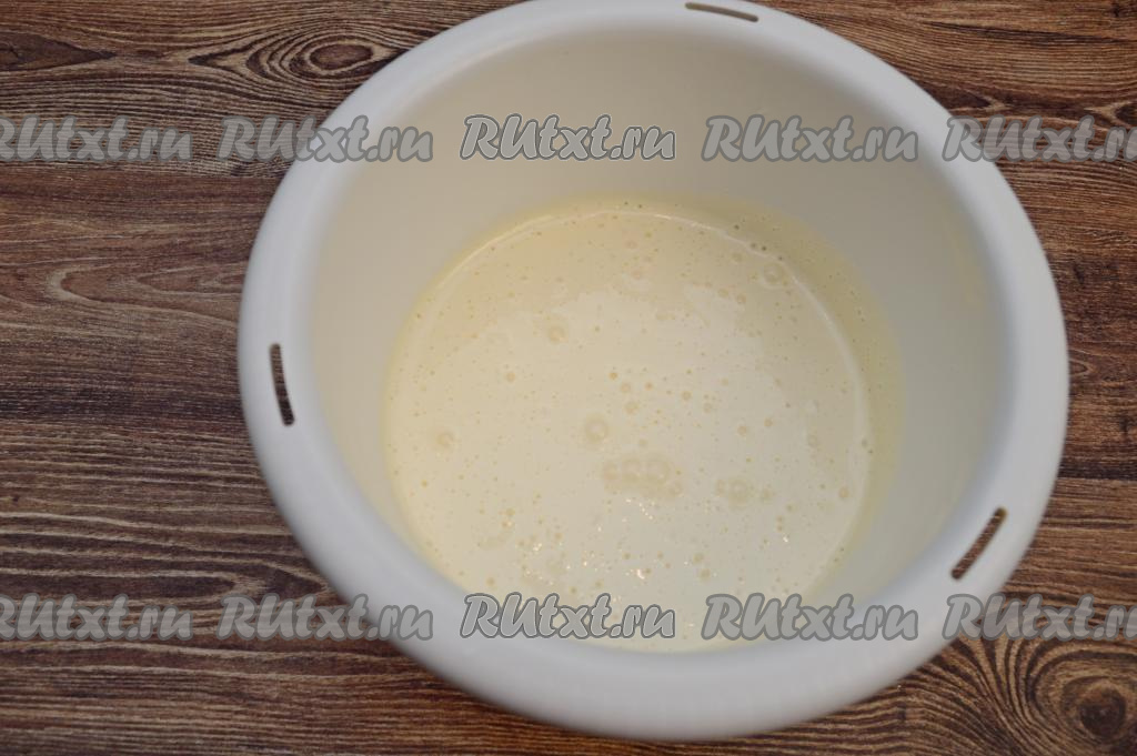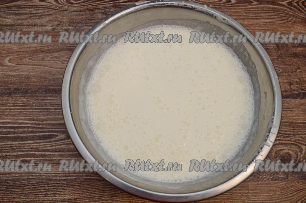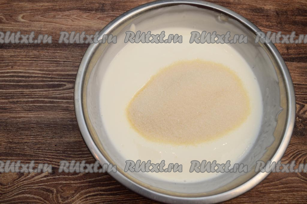 В кефирно-сметанную массу, оставшуюся в миске, всыпать 250 грамм сахара.