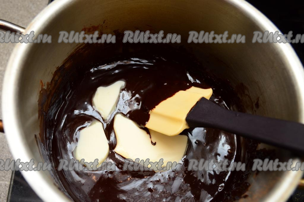 Постоянно перемешивая, дождаться, когда глазурь закипит. Выключить огонь, выложить сливочное масло.