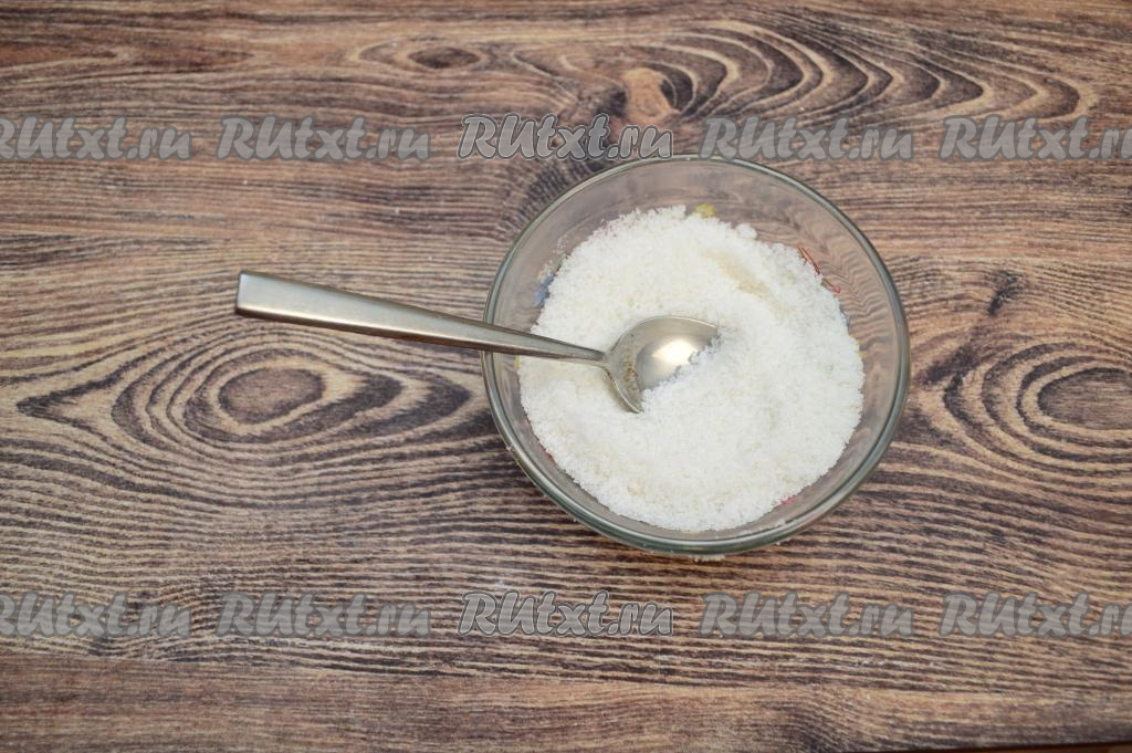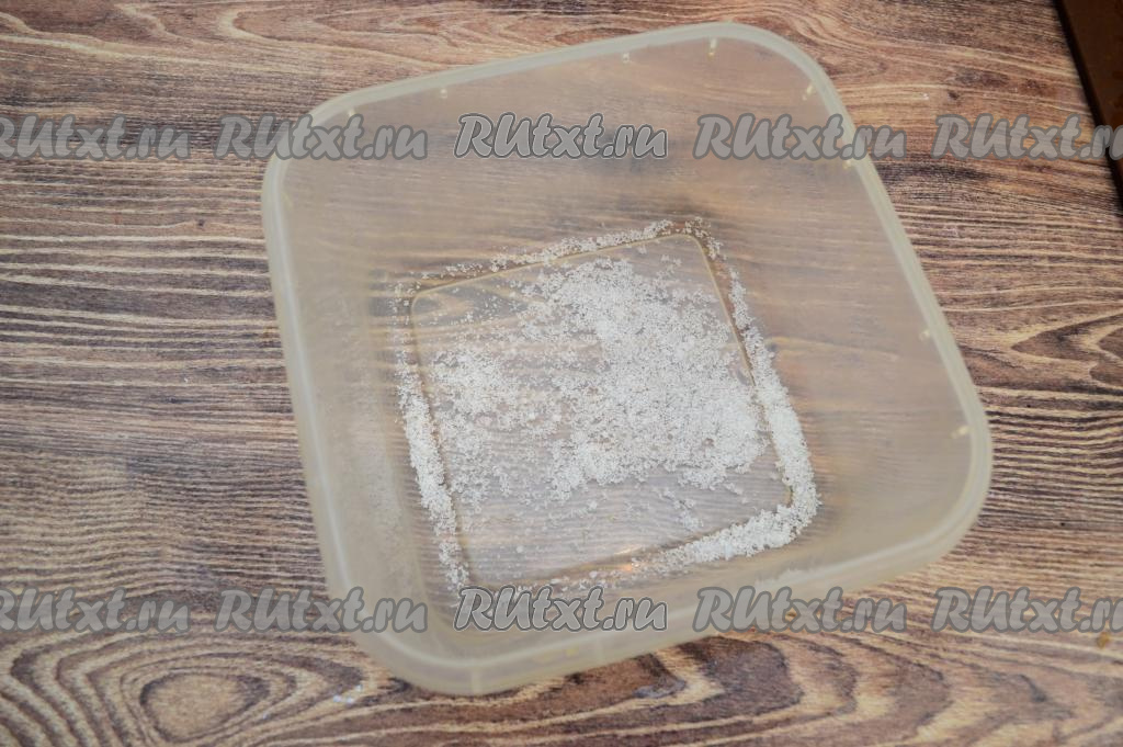 На дно контейнера (или кастрюльки) насыпать немного смеси соли и сахара.