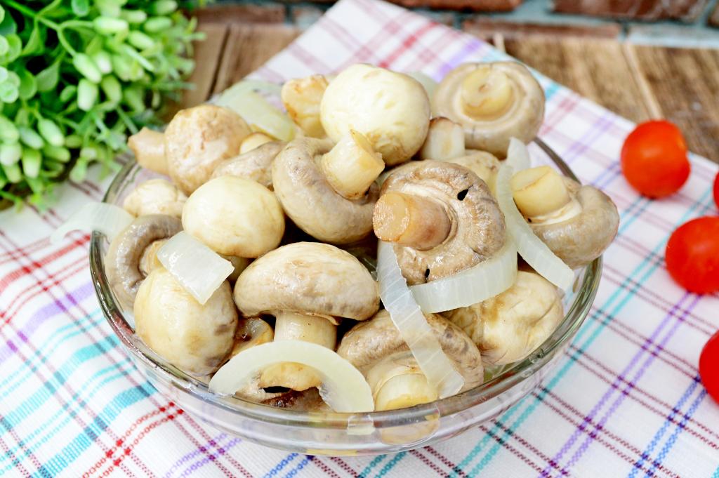 Шампиньоны, маринованные с луком в домашних условиях, - это аппетитная, вкусная закуска для повседневного или праздничного стола. Грибы получаются ароматными, в меру солёными, лук - не переваренным, он служит отличным дополнением к грибочкам. Готовится закуска просто, к столу её можно подавать уже через 12 часов.