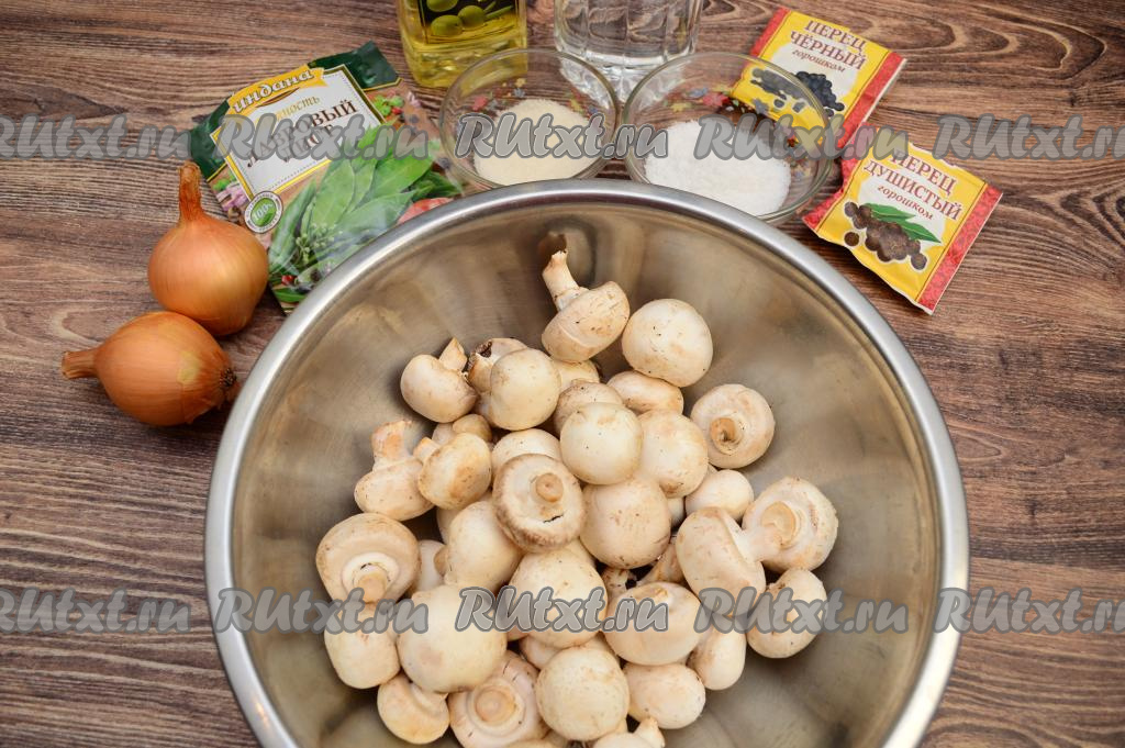 Подготовить продукты. Для маринования лучше всего брать шампиньоны небольшого размера.