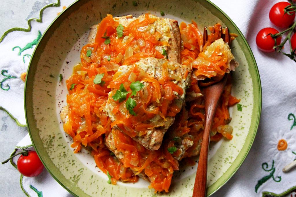 Предлагаю приготовить на сковороде горбушу, тушёную с морковью и луком. Благодаря тому, что рыба готовится на овощной подушке из морковки и лука, она получается вкусной, нежной и сочной. Рецепт очень простой и одновременно удачный. Такую тушёную горбушу можно подать с любым гарниром или салатом из свежих овощей.