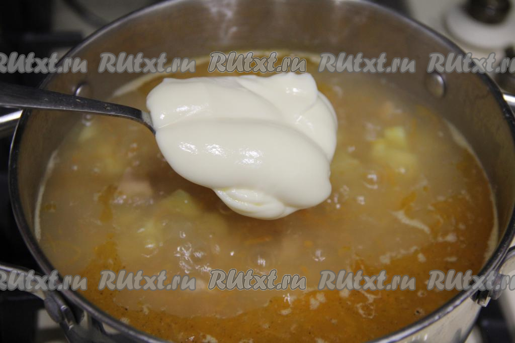 Если у вас плавленный сырок, тогда его нужно предварительно нарезать на небольшие кубики, чтобы он быстрее растворился.