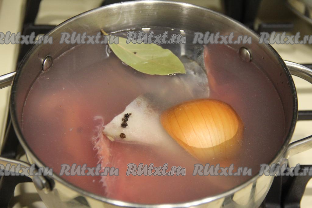 Когда рыбный бульон закипит, снять пену, варить 25 минут на медленном огне.