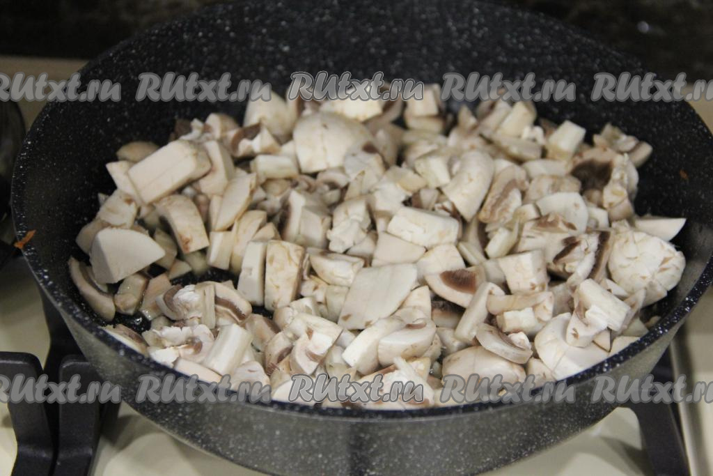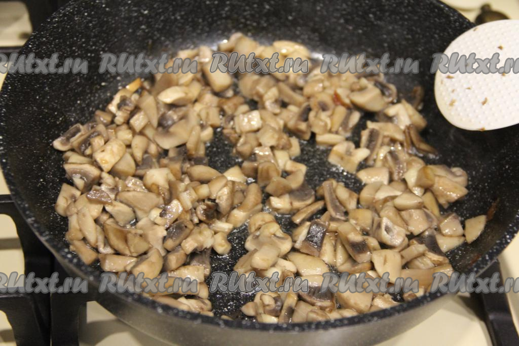 Жарить шампиньоны в течение 10 минут, иногда перемешивая, на среднем огне.