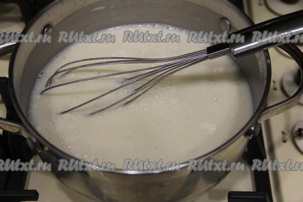 Перемешать массу венчиком до однородности и поставить на средний огонь.