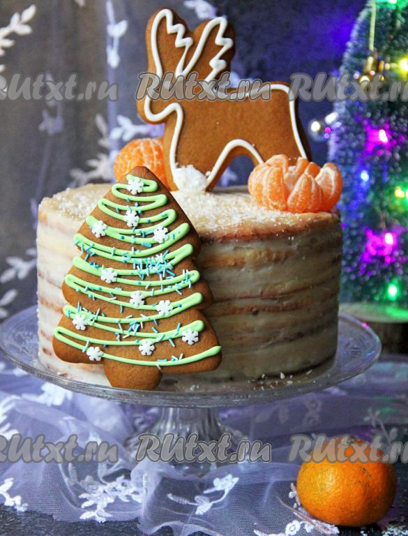 Готовый торт не требует особенного украшения, я украсила имбирными пряниками, мандаринами, верх посыпала кокосовой стружкой. Творожный "Наполеон", благодаря заварному крему, получается мягким, нежным, вкусным, хорошо пропитанным.