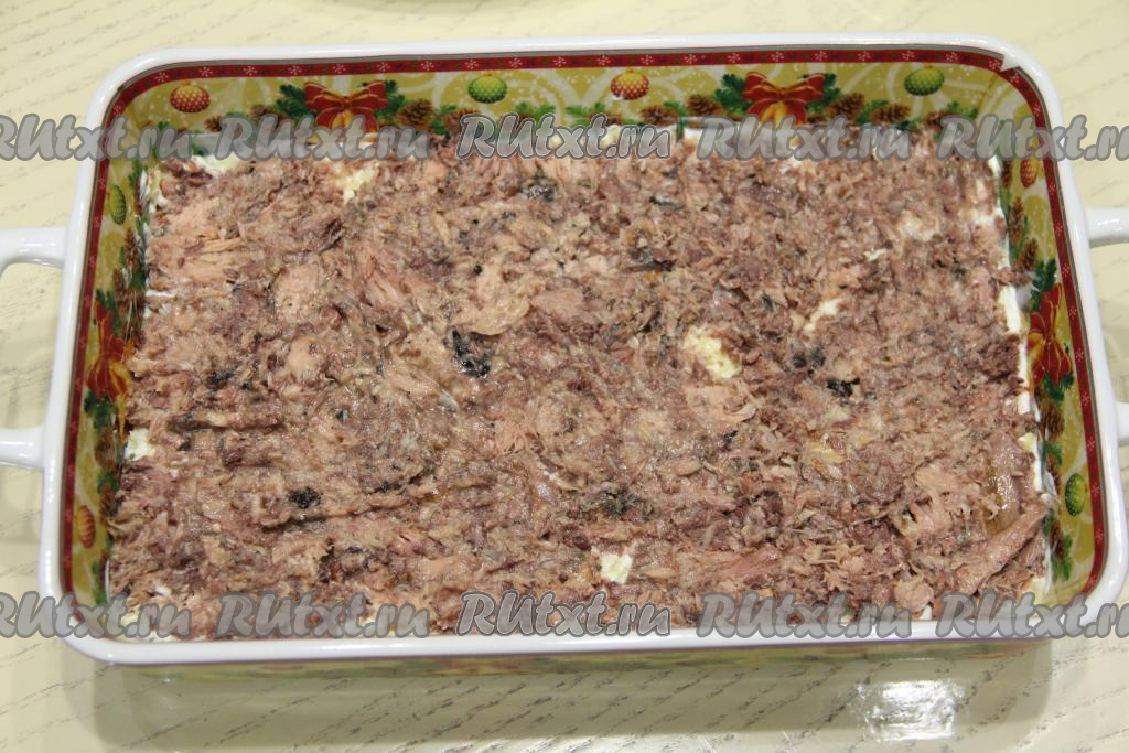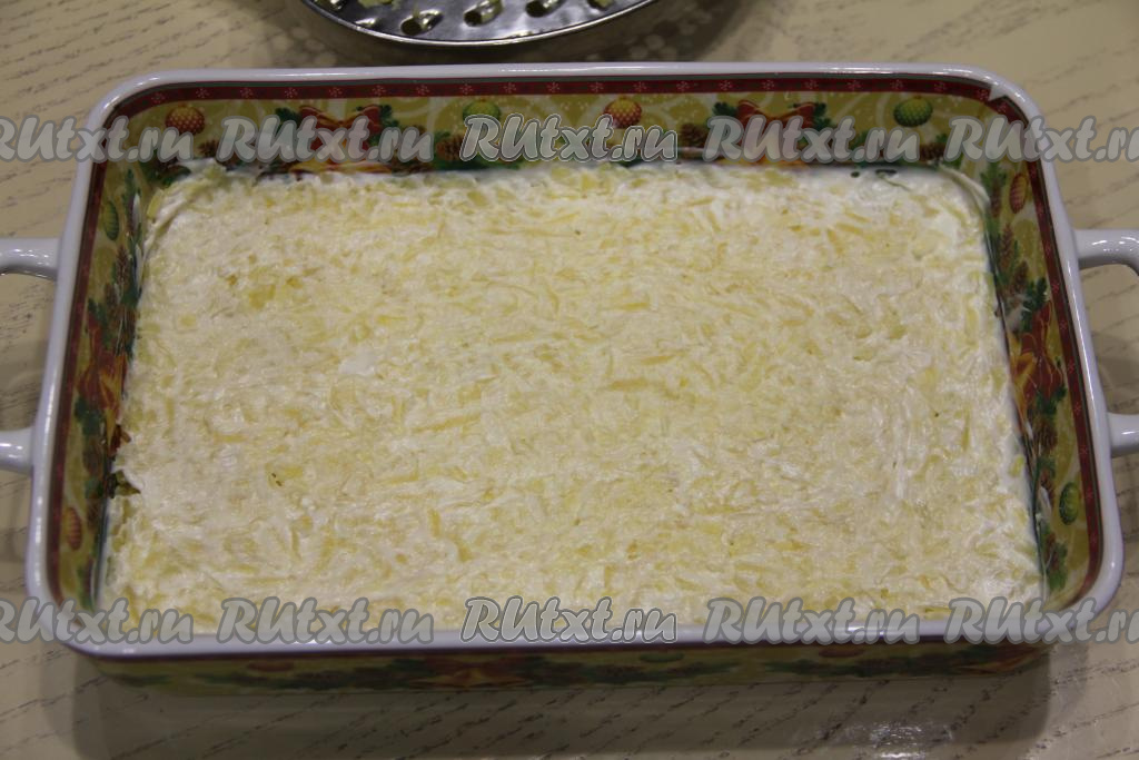 Смазать этот слой майонезом и разровнять.