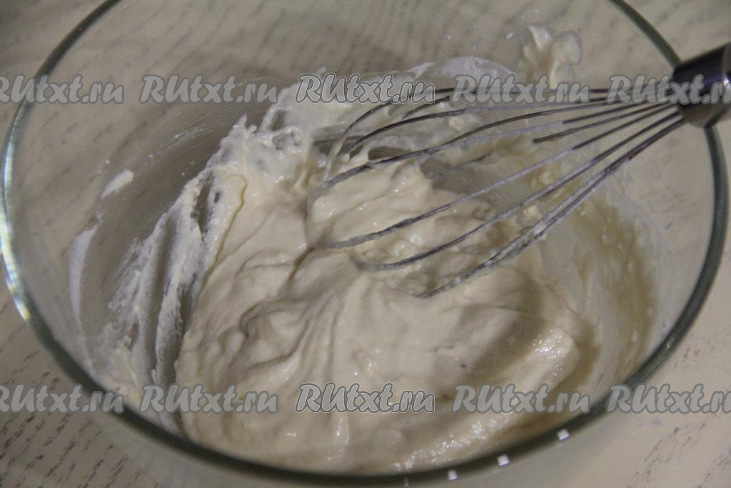 Добавляя частями оставшуюся муку и полностью вмешивая её, замесить тесто, напоминающее по консистенции в меру густую сметану, как на фото.