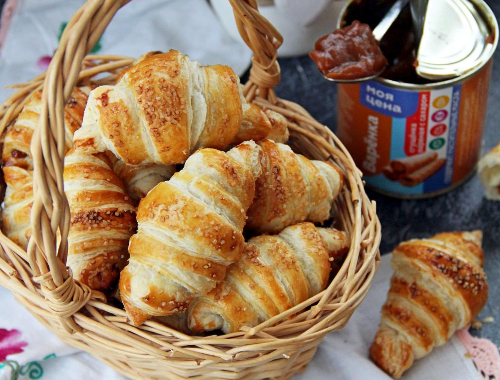 Предлагаю из покупного слоёного теста приготовить очень вкусные, воздушные рогалики с начинкой из варёной сгущёнки. Формируется эта выпечка достаточно быстро и просто, а в результате к столу вы сможете подать большую тарелку нежных, слоистых, красивых рогаликов. Такая выпечка станет приятным дополнением и к чаю, и к кофе!