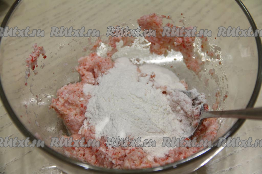 Всыпать в миску муку.