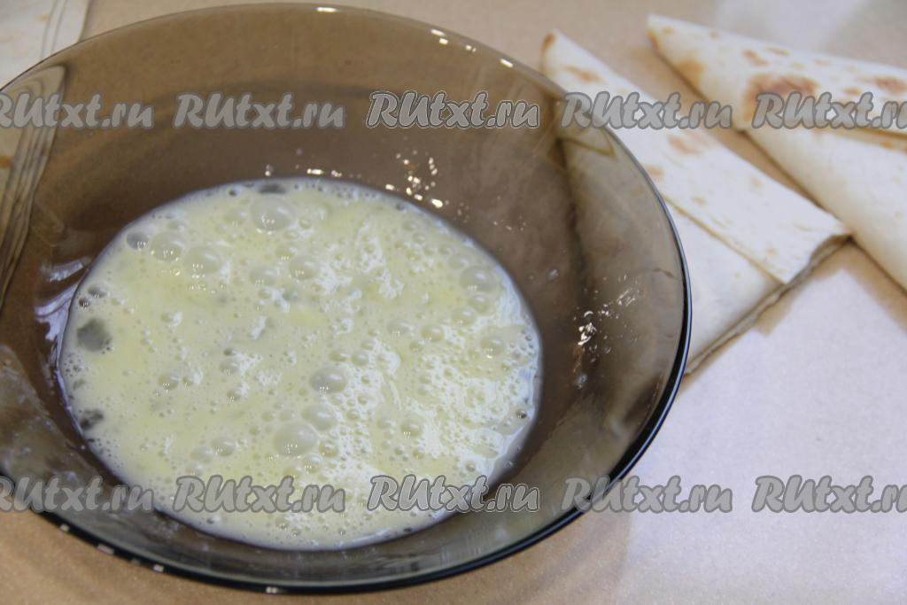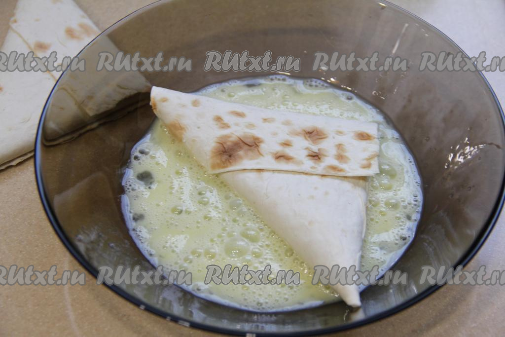 В сковороду влить растительное масло, разогреть. Окунуть конвертик в яичную массу с двух сторон.