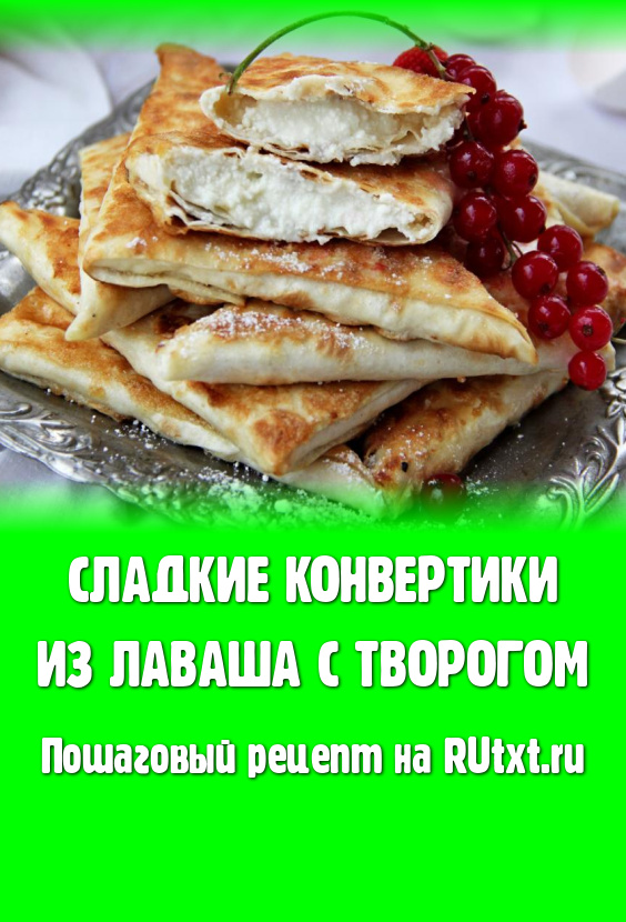 Лаваш можно использовать для приготовления различных блюд. В этот раз предлагаю сформировать из лаваша конвертики с в меру сладкой начинкой из творога, а затем обжарить их на сковороде. В результате вы получите вкусное, аппетитное блюдо, которое по сути является экспресс вариантом пирожков. Такие конвертики с творожной начинкой станут прекрасным дополнением и к чаю, и к кофе!