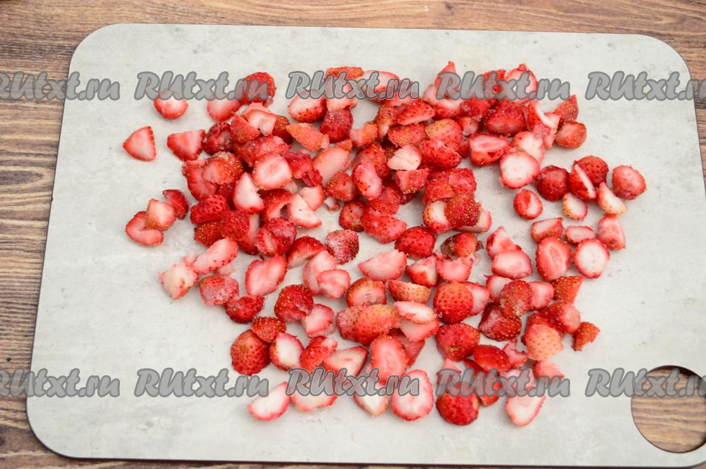Клубнику нарезать на небольшие кусочки.