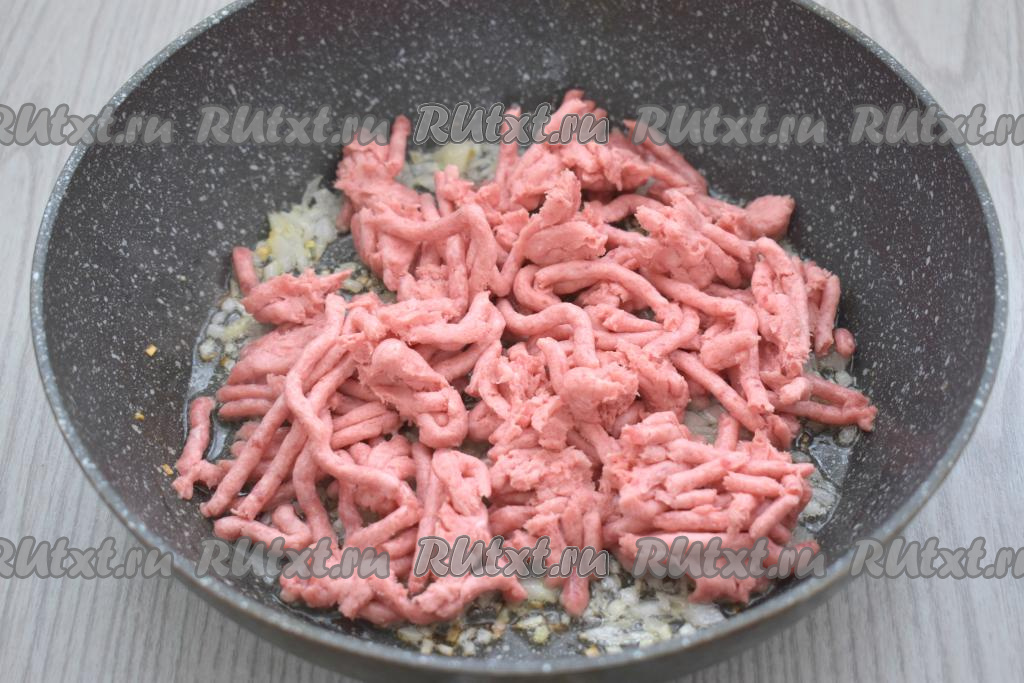 Для этого блюда можно приготовить фарш в домашних условиях, пропустив кусочки мяса (у меня - свинина) через мясорубку, а можно использовать покупной фарш.