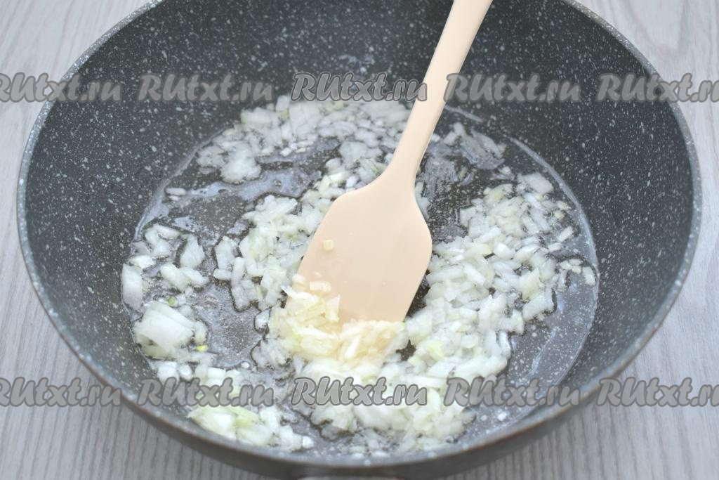Если фасоль свежая, её нужно вымыть, отрезать у каждого стручка "кончики" с двух сторон. Затем каждый стручок разрезать на 3-4 части. Замороженную фасоль можно не размораживать. Приступаем непосредственно к приготовлению. Прогреваем в сковороде растительное масло, выкладываем в него очищенный и мелко нарезанный лук, обжариваем его на среднем огне до прозрачности (минуты 3), периодически перемешивая.