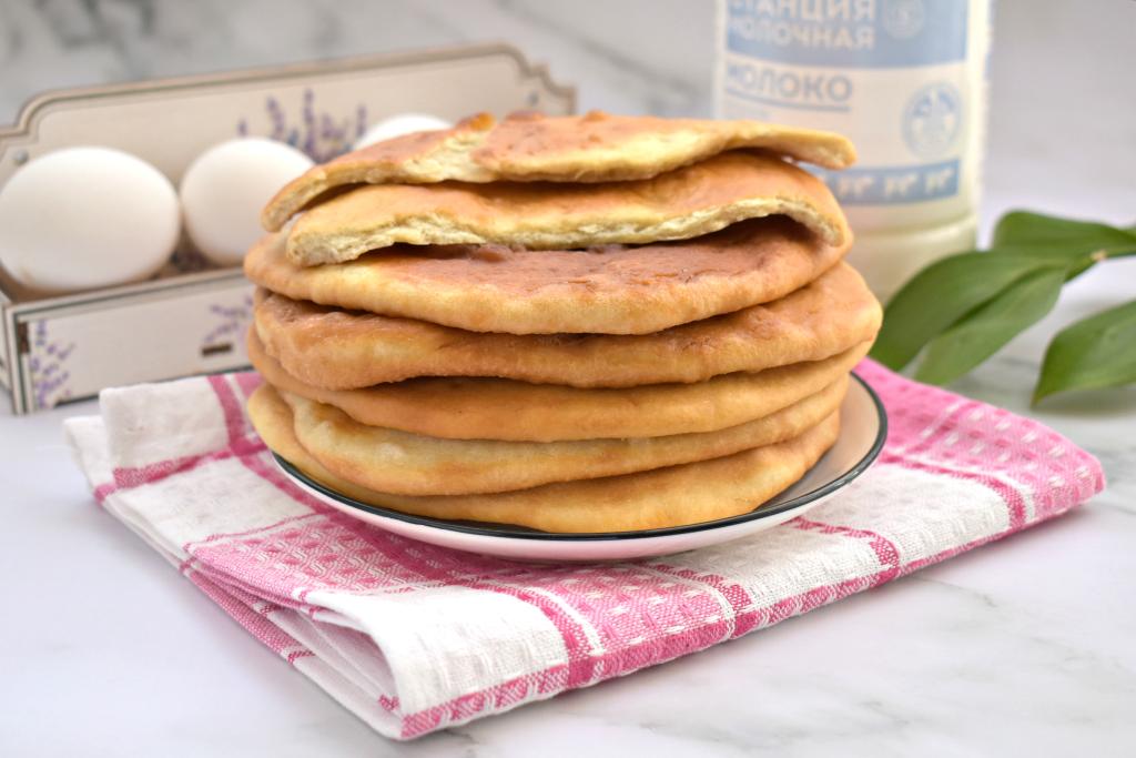 Постепенно жарим на сковороде все лепёшки, замешанные на прокисшем молоке. Мягкие, вкусные, аппетитные лепёшки подаём к столу тёплыми или полностью остывшими.