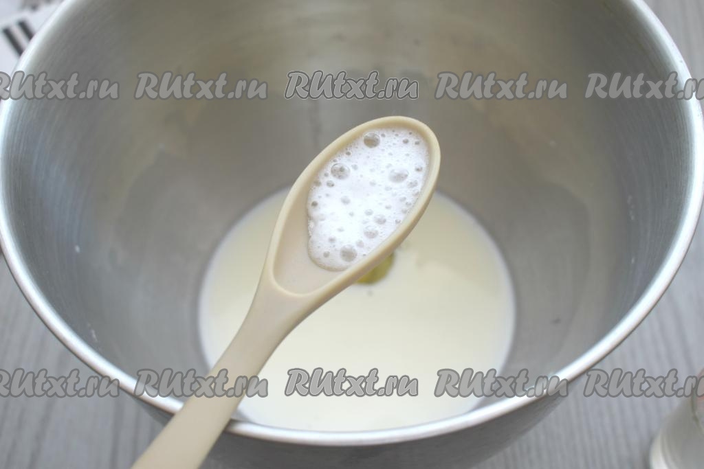Сразу же добавляем соду, погашенную уксусом (или лимонным соком).