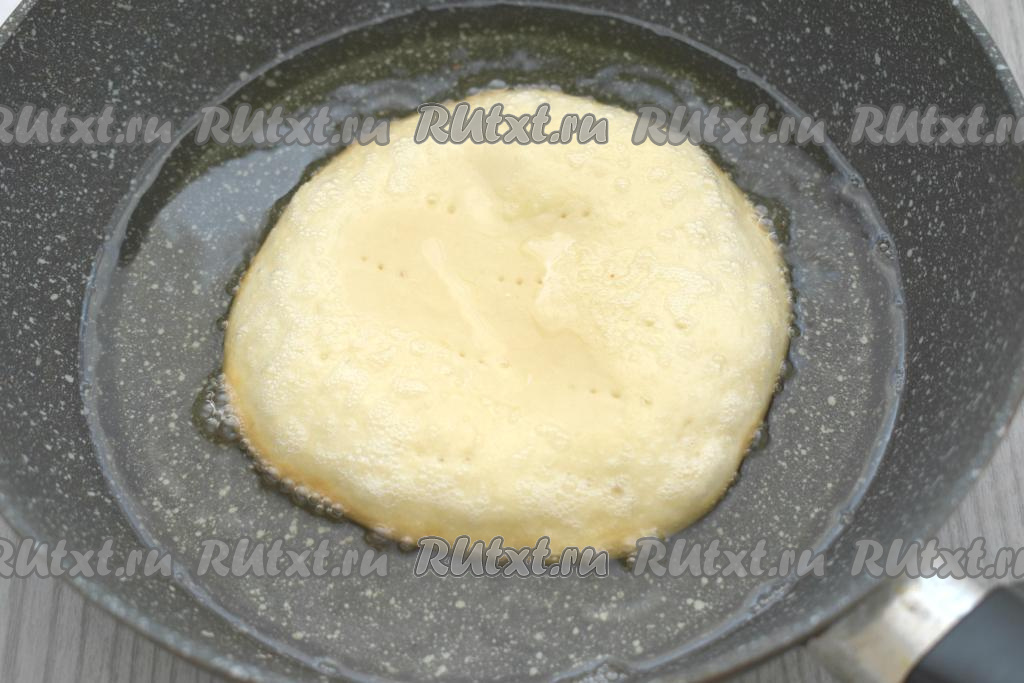 Разогреваем в сковороде достаточное количество растительного масла. Выкладываем лепёшку в горячее масло и жарим на среднем огне до золотистости снизу (примерно 2 минуты), затем переворачиваем и готовим до подрумянивания с другой стороны (тоже ориентировочно в течение 2 минут).
