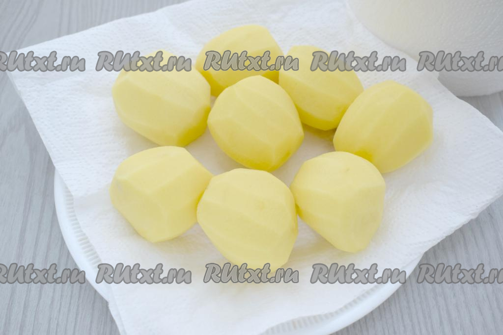 Очищаем картофель, ополаскиваем под проточной водой и обсушиваем хорошо бумажными полотенцами, удаляя лишнюю влагу.