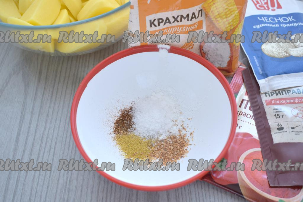 В качестве специй я использовала приправу для картофеля, молотую паприку, чёрный молотый перец, сушёный чеснок.