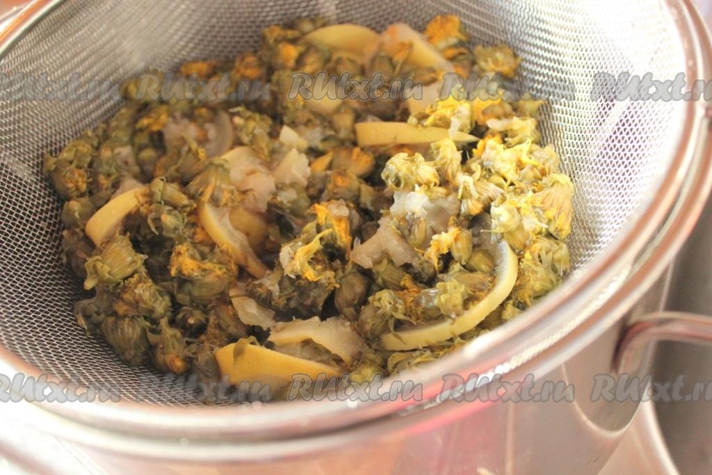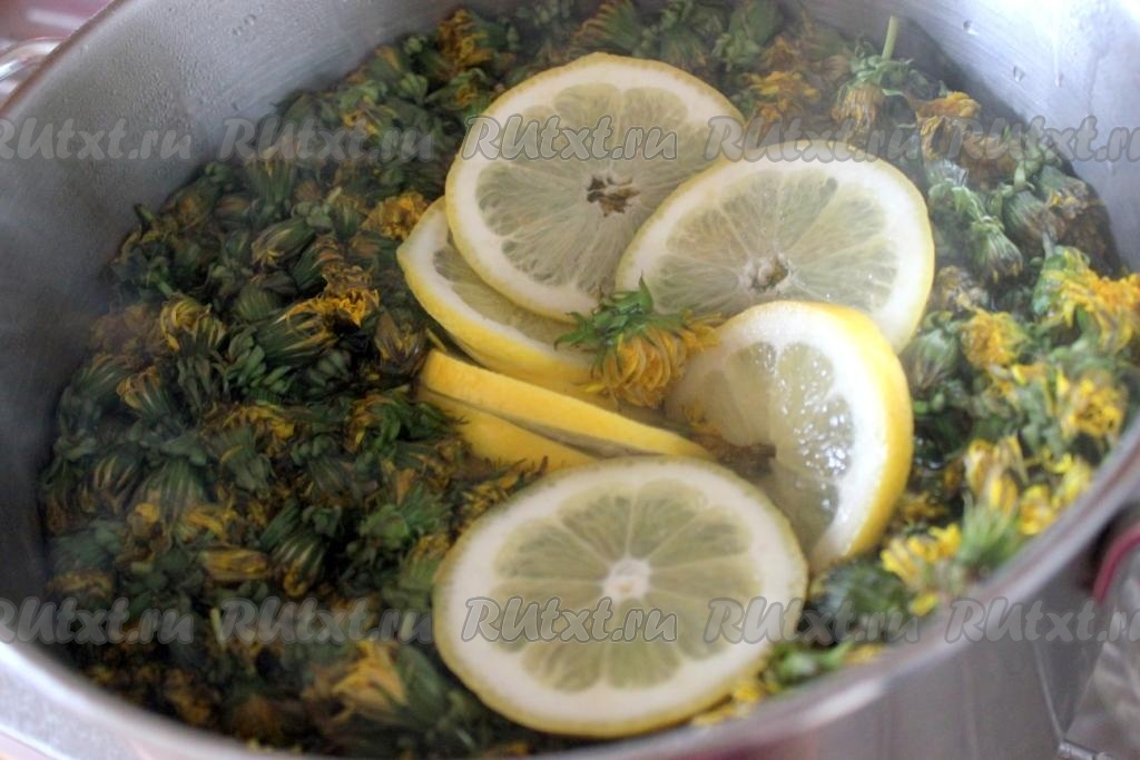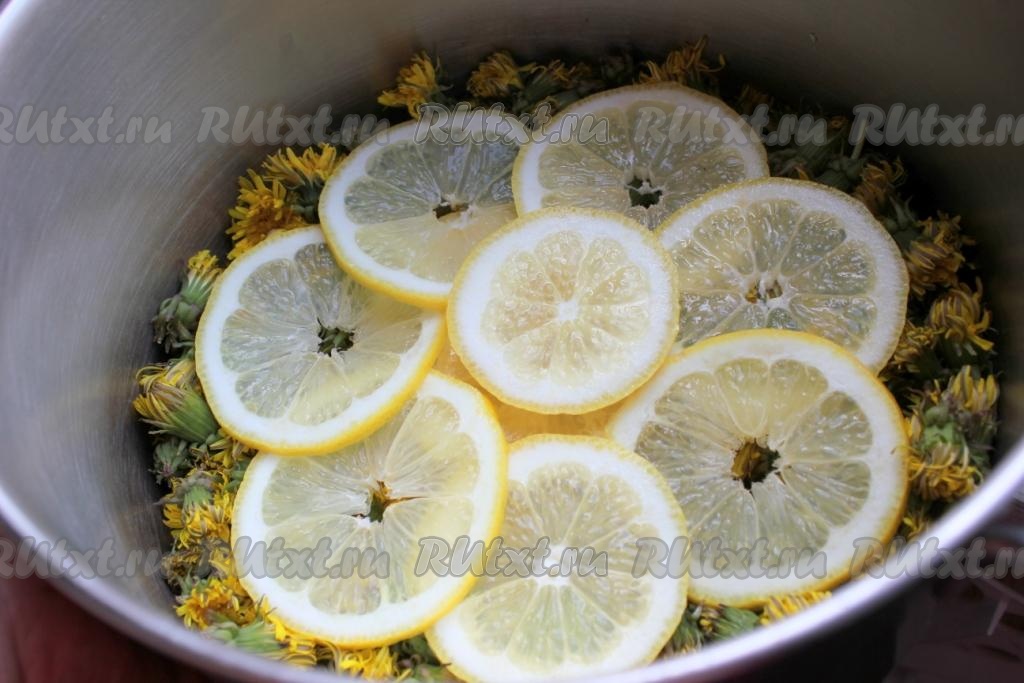 Цветки одуванчиков вымыть и добавить кусочки лимона.